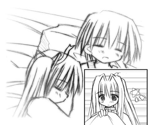 真琴はベッドの上にいる。というか寝ている。祐一の隣に。